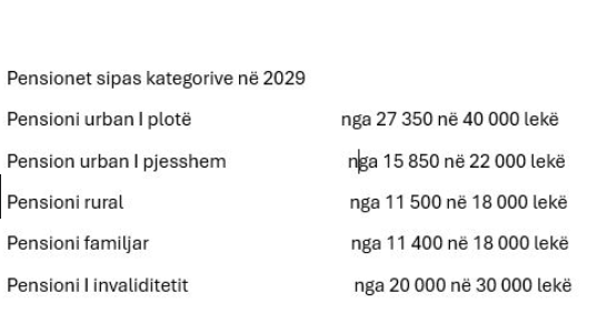 Në vitin 2029, ai do të marrë 40 mijë lekë në muaj. Edhe për pensionin e dalë nga kontributet në fshat, një individ që sot merr 11 mijë lekë, pas 4 vitesh ai do të ketë pension mujor 18 mijë lekë.