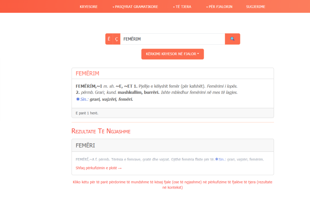 Shkojmë tek fjala FEMËRIM. Vajta njëzet vjet që përkthej e nuk e kam hasur. Shpjegimi? Pjellje e këlyshit femër, grari (?). Hajde merre vesh, por ka nevojë që ta rregullojnë.