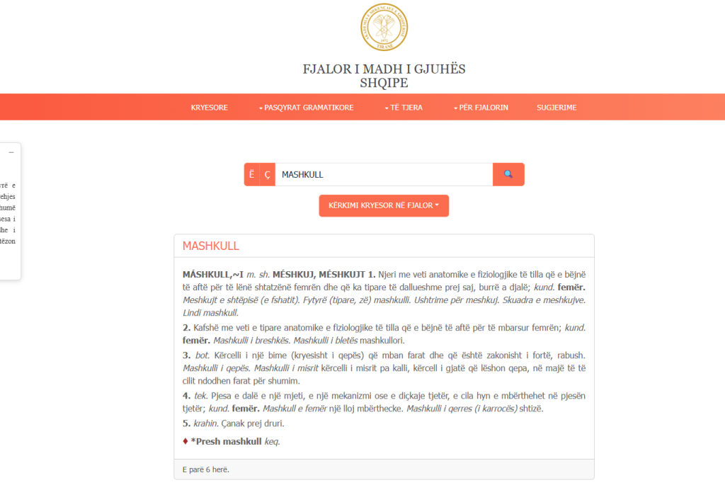 Kalojmë tani tek shpjegimet e disa fjalëve që janë mirëfilli pjesë e leksikut shqip. Marrim fjala bie fjalën MASHKULL, ku mes të tjerave gjejmë shpjegime të tipit “të aftë të lerë shtatëzanë femrën”, sqarim të cilin unë e shoh paragjykues dhe fyes, për sa kohë “lënia shtatëzanë e një femre” hyn tek problemet shëndetësore.